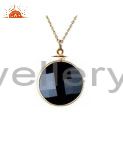 24K Yellow Gold Plated Sterling Silver Black Onyx Bezel Set Pendant With Chain