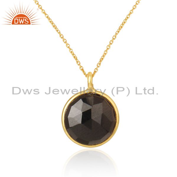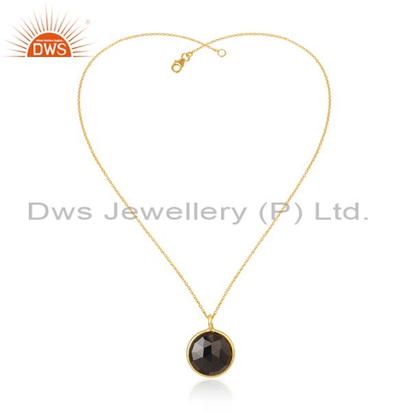24K Yellow Gold Plated Sterling Silver Black Onyx Gemstone Pendant With Chain