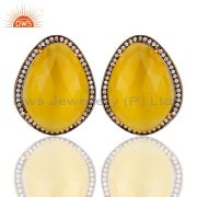 24K Yellow Gold Plated Sterling Silver Cz & Yellow Moonstone Prong Set Necklace