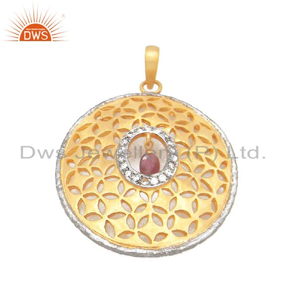 24K Yellow Gold Plated Sterling Silver Pave Diamond And Tourmaline Pendant