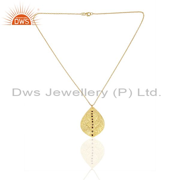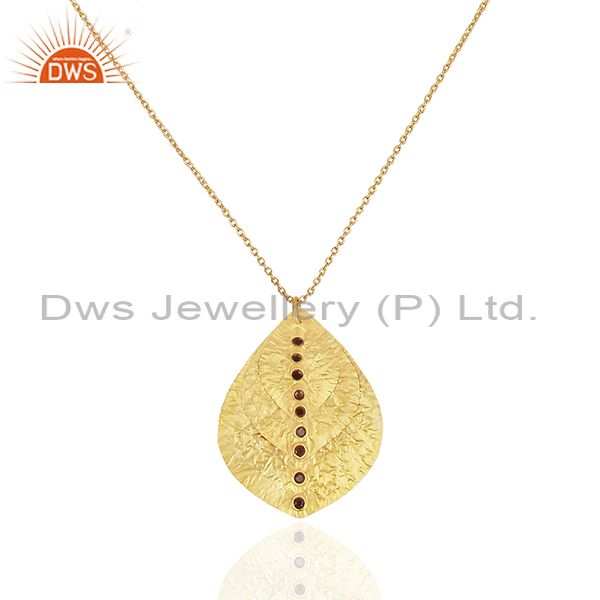 24K Yellow Gold Plated Sterling Silver Smoky Quartz Triple Petals Pendant Chain