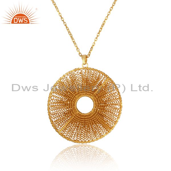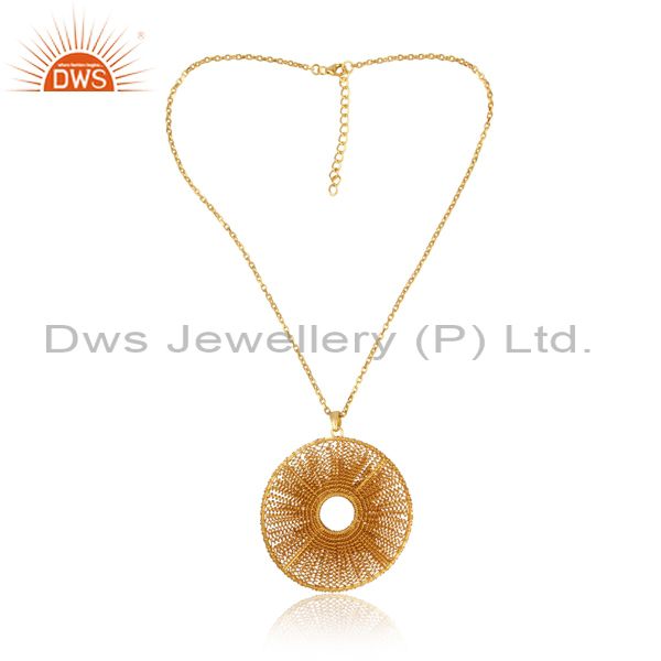 24K Yellow Gold Plated Sterling Silver Wire Woven Design Circle Pendant Necklace