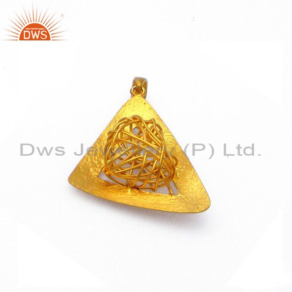 24K Yellow Gold Plated Sterling Silver Wire Woven Designer Pendant