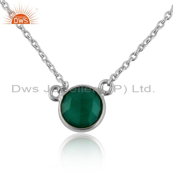 925 Fine Silver Natural Pearl and Green Onyx Gemstone Necklace