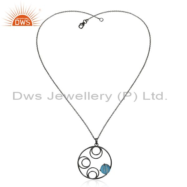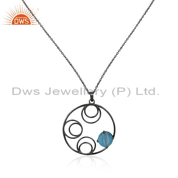 92.5 Silver Black Rhodium Plated Turquoise Gemstone Chain Pendant Manufacturers