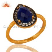 925 Silver Blue Corundum Gemstone Gold Plated Womens Pendant Necklace With Cz