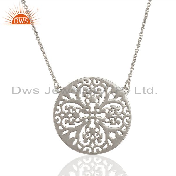 925 Silver Filigree Design White Rhodium Chain Pendant Suppliers