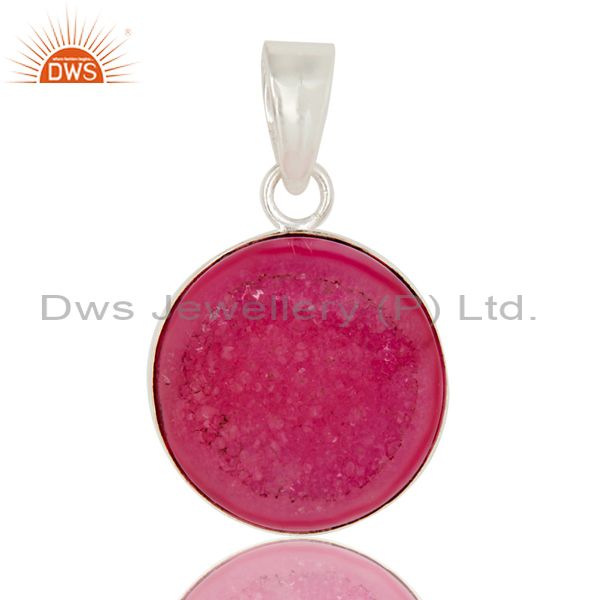 925 Solid Sterling Silver Pink Druzy Agate Bezel Set Pendant