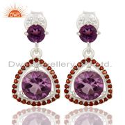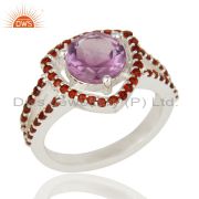 925 Sterling Silver Amethyst 12mm Round And Garnet Prong Set Gemstone Pendant