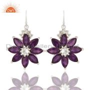 925 Sterling Silver Amethyst Cluster Flower Pendant With White Topaz