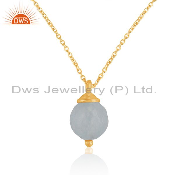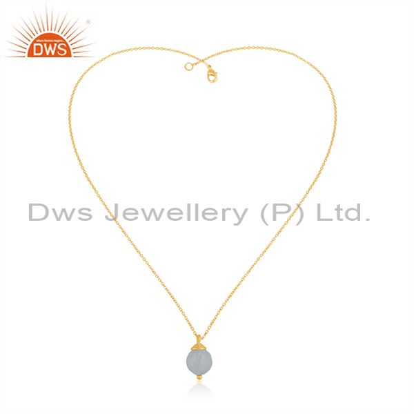 92.5 Sterling Silver Aqua Chalcedony Gemstone Gold Plated Chain Pendant Supplier