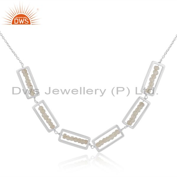 925 Sterling Silver Beaded Rainbow Moonstone Designer Necklace