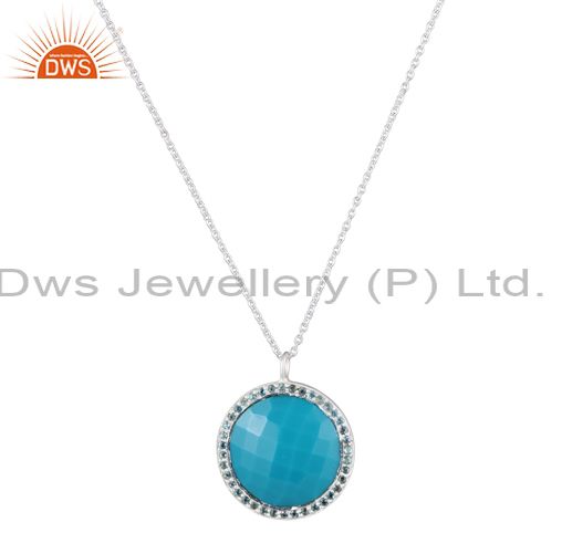 925 Sterling Silver Blue Topaz And Turquoise Gemstone Halo Pendant With Chain