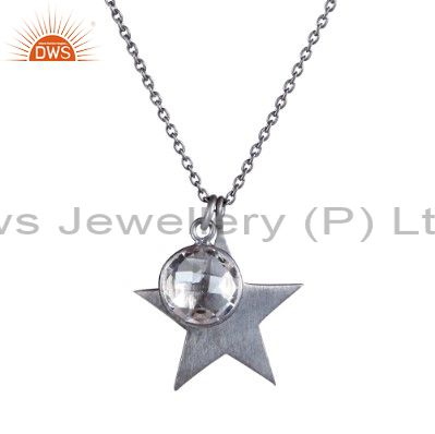 925 Sterling Silver Crystal Quartz And Star Charm Pendant With Chain