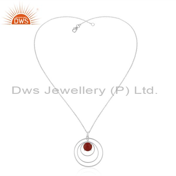 92.5 Sterling Silver Designer Red Onyx Gemstone Chain Pendant Wholesale