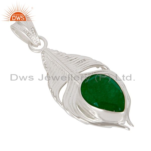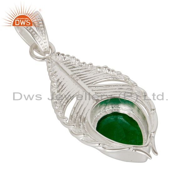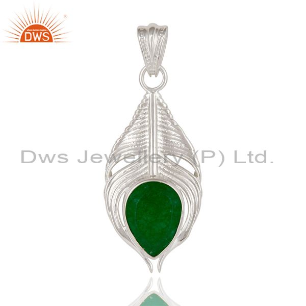 925 Sterling Silver Green Aventurine Gemstone Peacock Feather Pendant