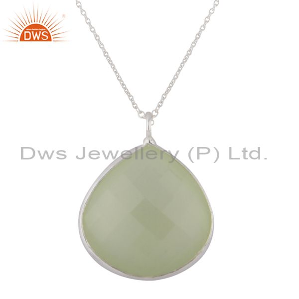 925 Sterling Silver Green Chalcedony Stone Bezel Set Drop Pendant With Chain