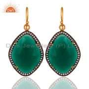 925 Sterling Silver Green Onyx Gemstone Gold Plated Pendant Necklace With CZ