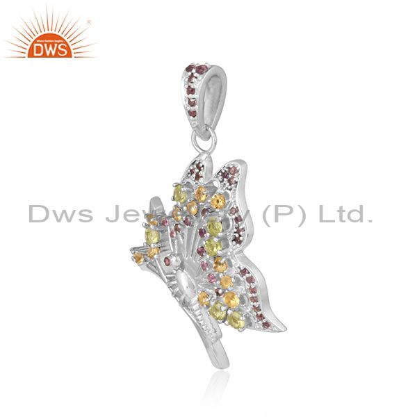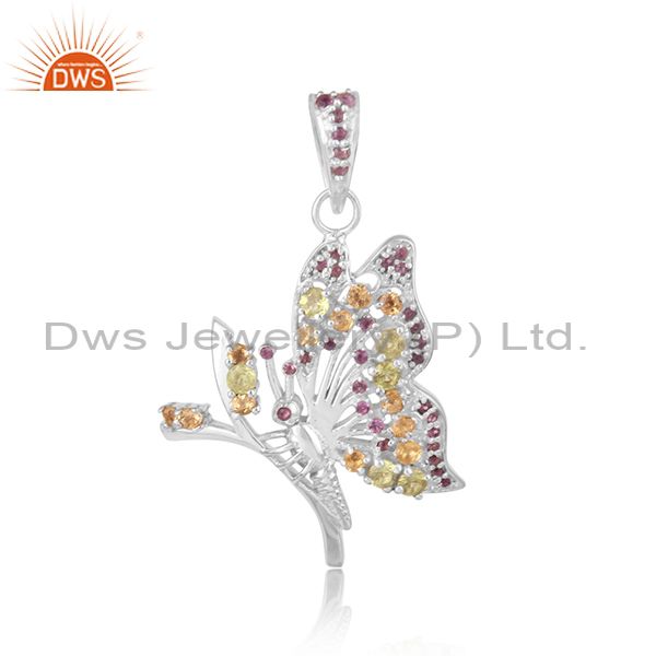 925 Sterling Silver Multi Colored Semi-Precious Gemstone Butterfly Pendant