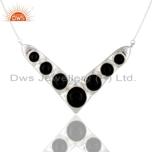 925 Sterling Silver Natural Black Onyx Gemstone Necklace
