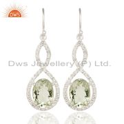 925 Sterling Silver Natural Green Amethyst With White Topaz Infinity Pendant