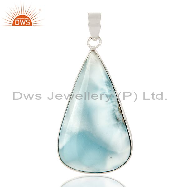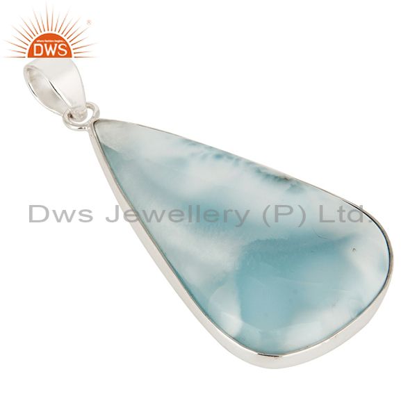 925 Sterling Silver Natural Larimar Gemstone Bezel Set Pendant Stunning Jewelry