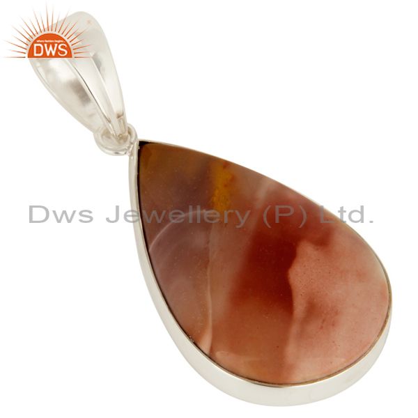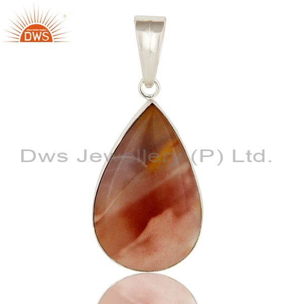 925 Sterling Silver Natural Mookaite Gemstone Bezel Set Drop Pendant