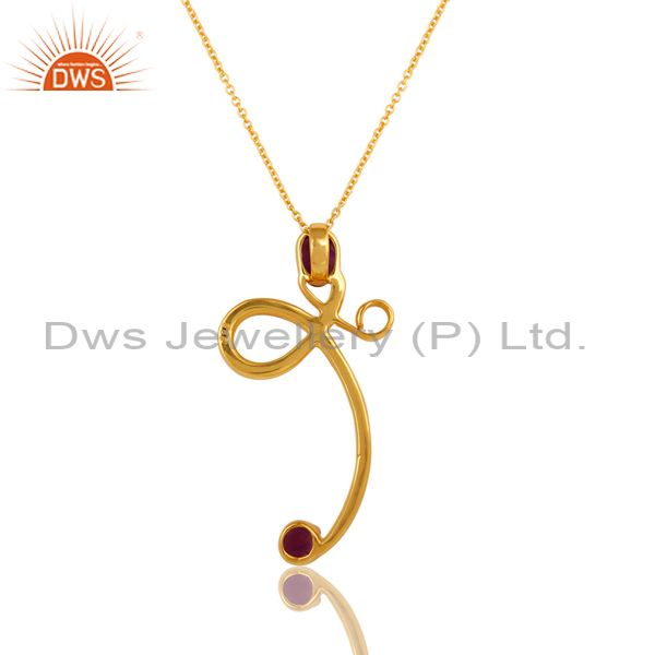 925 Sterling Silver Natural Purple Amethyst Designer Pendant - Gold Plated