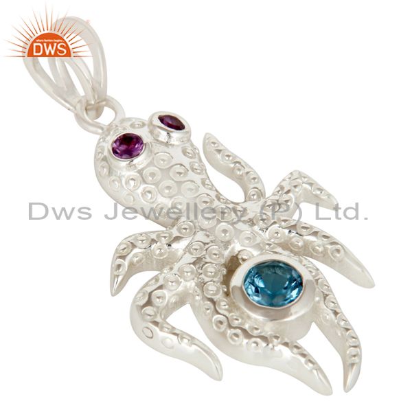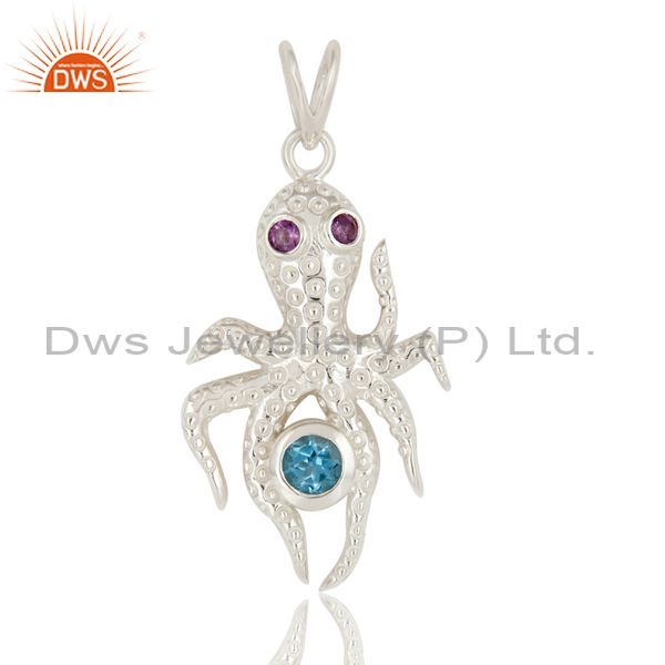 925 Sterling Silver Octopus Pendant Amethyst and Blue Topaz Gemstone Jewelry