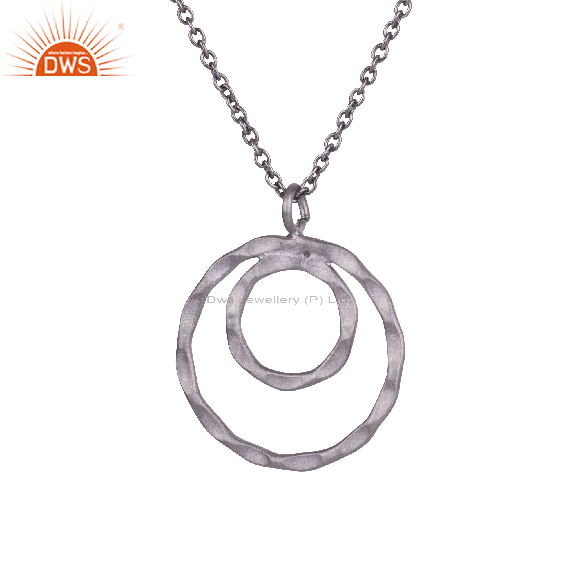 925 Sterling Silver Oxidized Hammered Two Circle Pendant With Chain Necklace