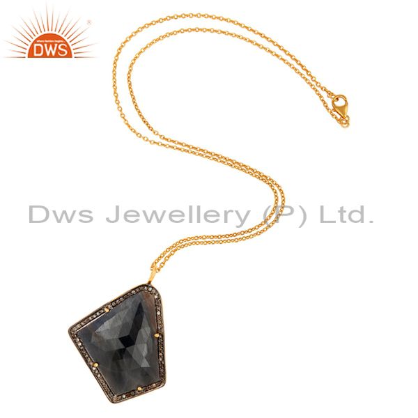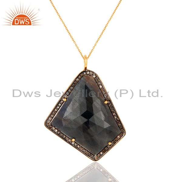 925 Sterling Silver Pave Set Diamond Blue Sapphire Gemstone Pendant With Chain
