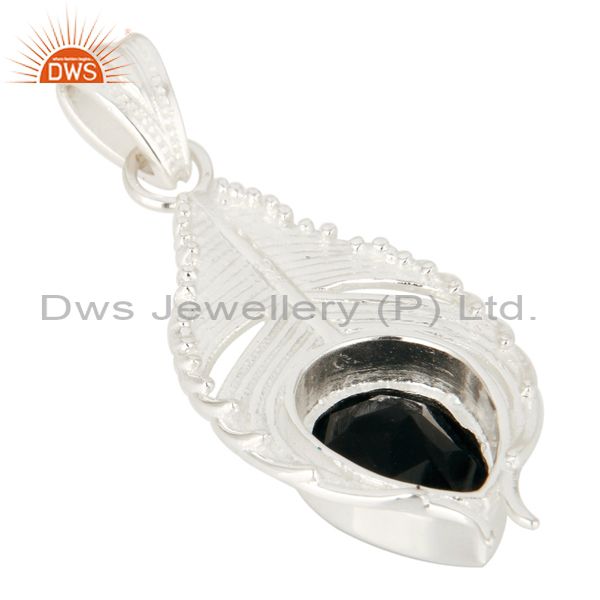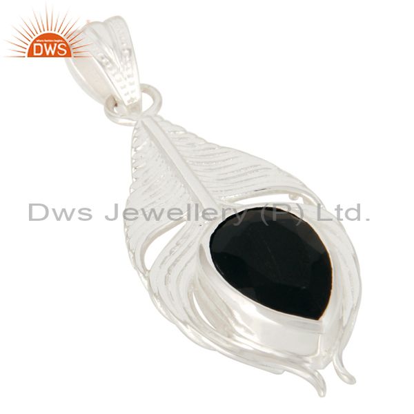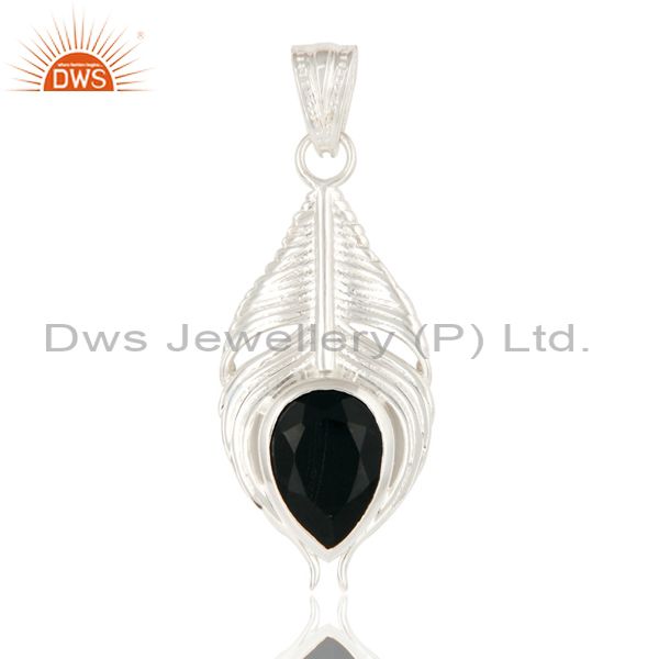925 Sterling Silver Peacock Feather Pendant With Natural Black Onyx Gemstone