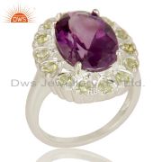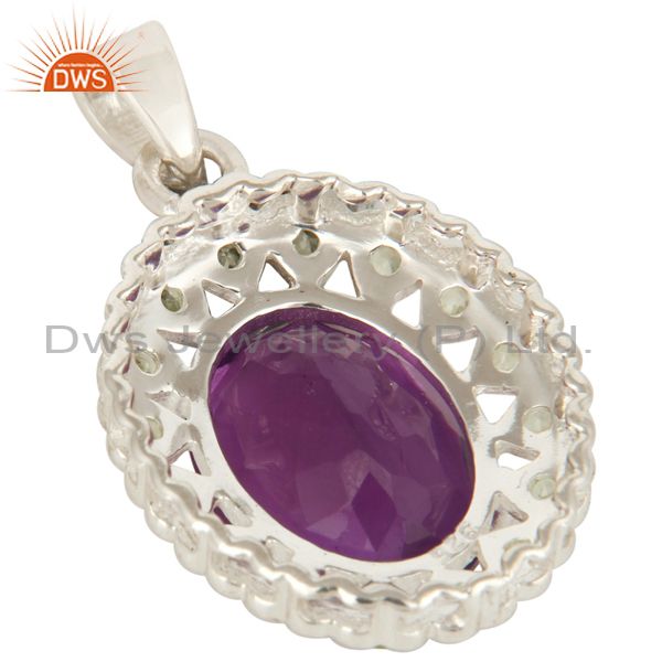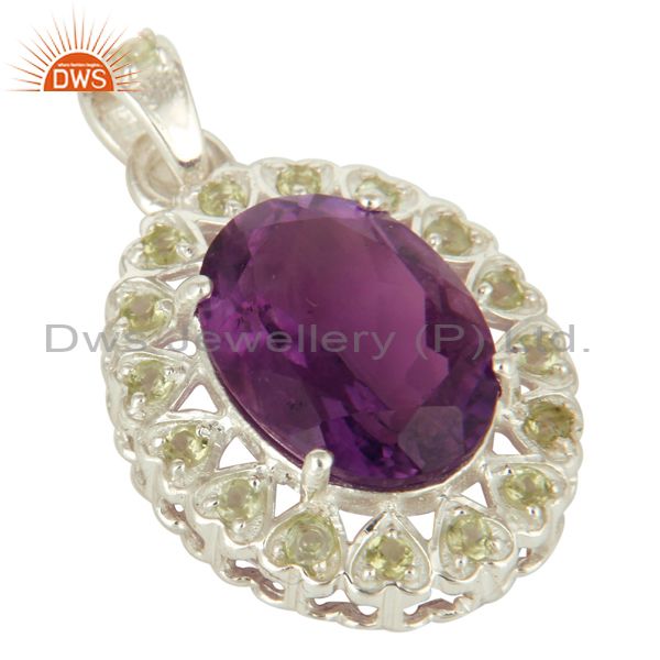 925 Sterling Silver Purple Amethyst And Peridot Prong Set Pendant