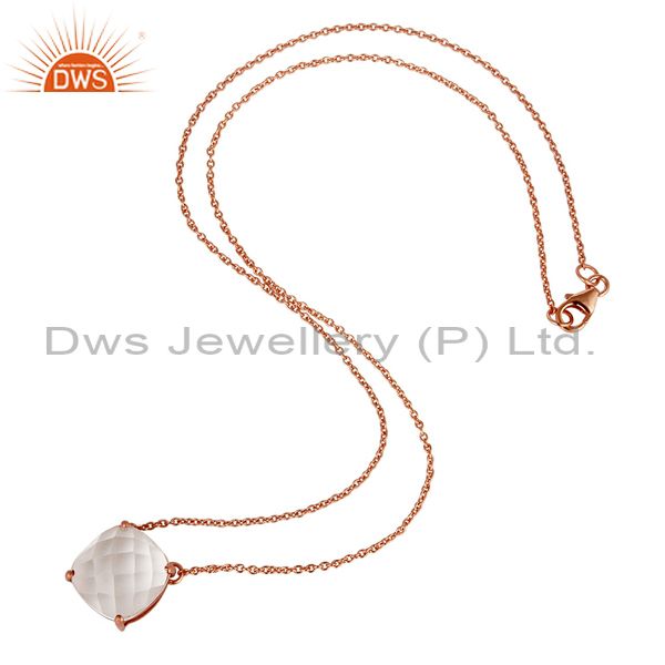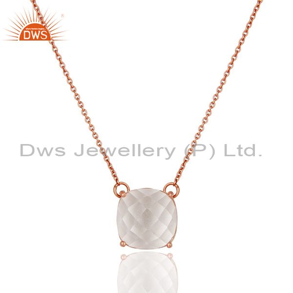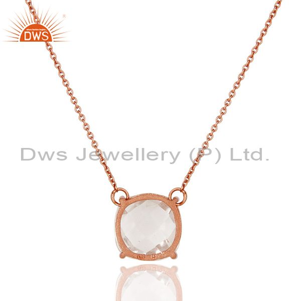 925 Sterling Silver Rose Gold Plated Crystal Gemstone Prong Set Chain Necklace