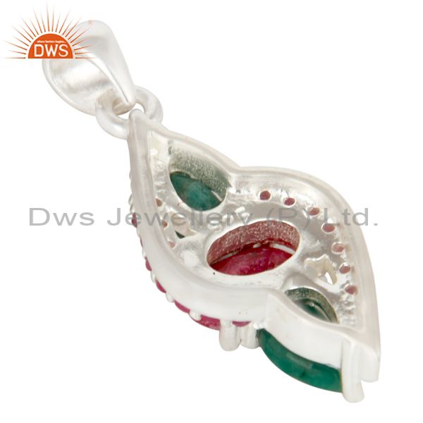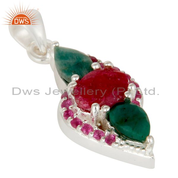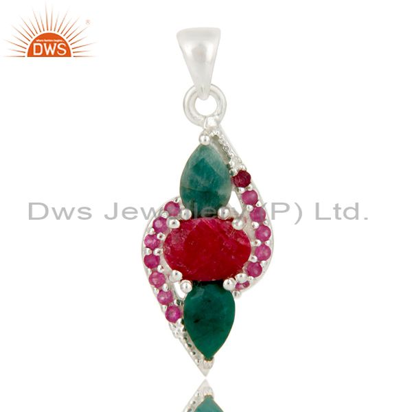 925 Sterling Silver Ruby And Emerald Gemstone Prong Set Designer Pendant