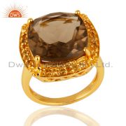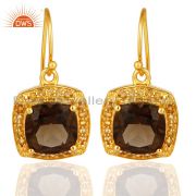 925 Sterling Silver Smokey Quartz And Citrine Pendant - Gold Plated
