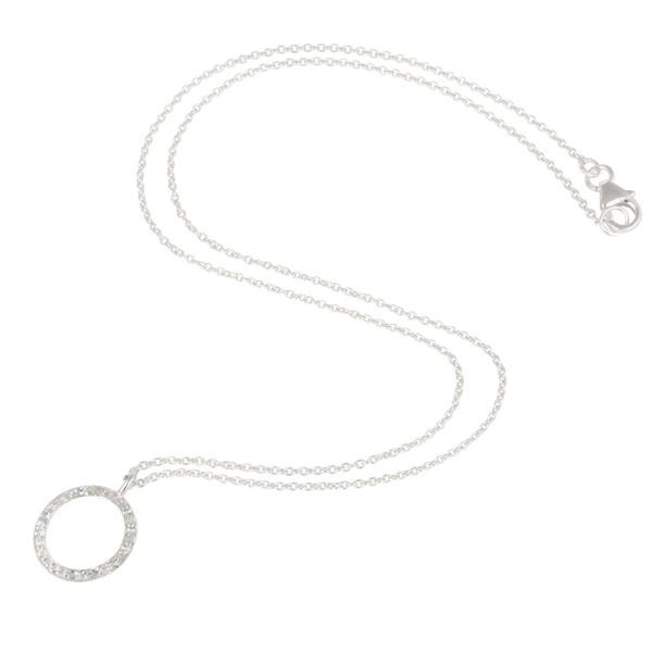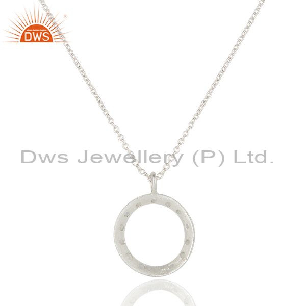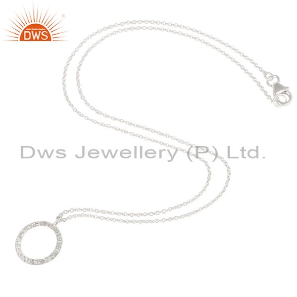 925 Sterling Silver White Topaz Gemstone Circle Designs Pendant 17" In Chain