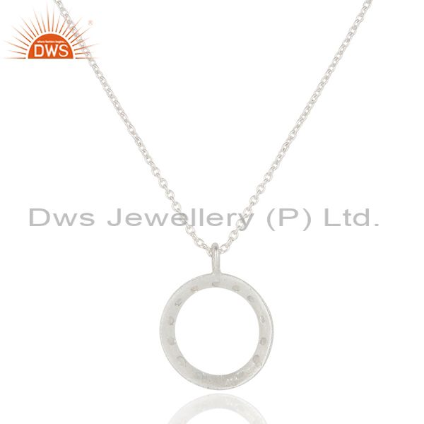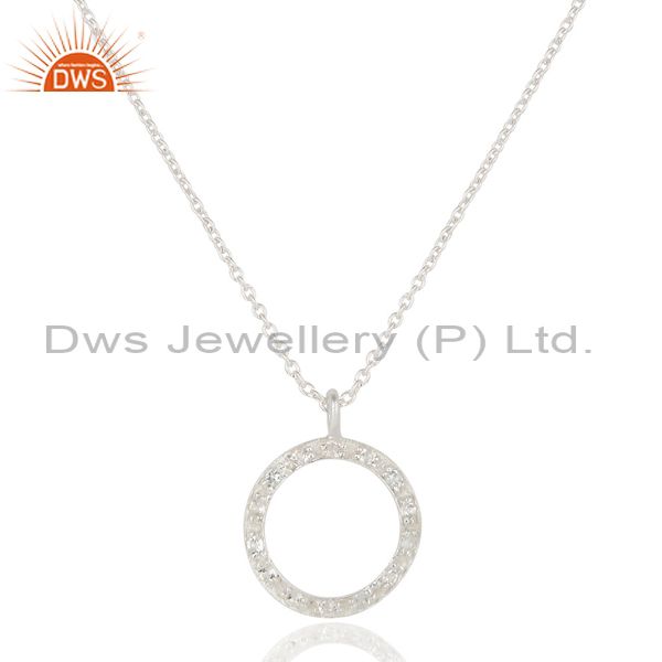 925 Sterling Silver White Topaz Gemstone Circle Pendant With Chain Necklace