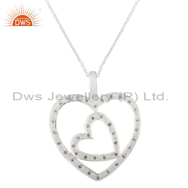 925 Sterling Silver White Topaz Heart Designer Pendant With Chain