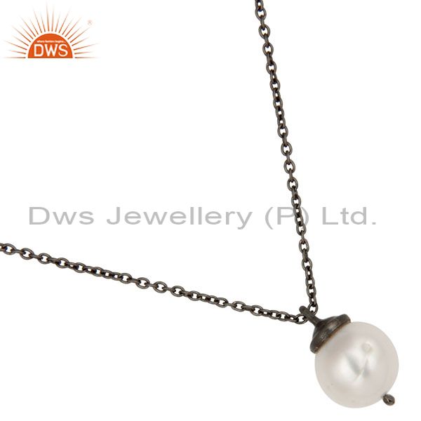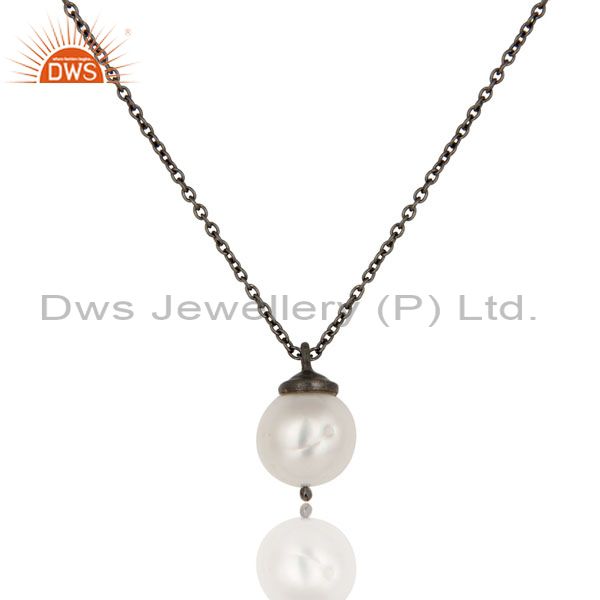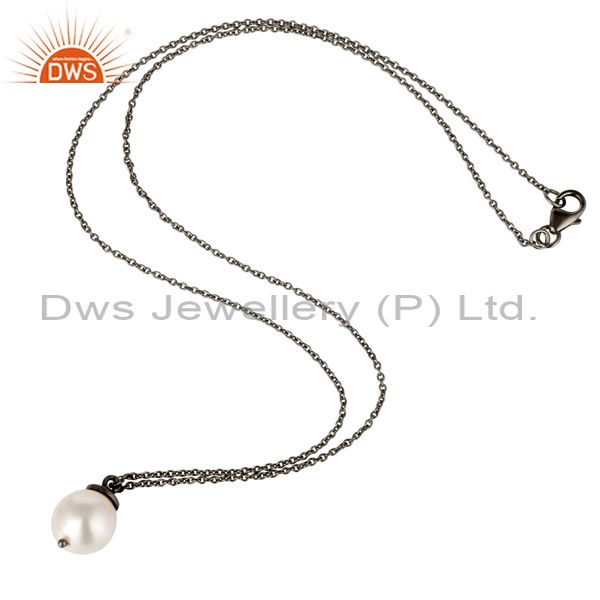 925 Sterling Silver With Oxidized White Pearl Designer Pendant With Chain