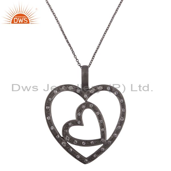 925 Sterling Silver With Oxidized White Topaz Heart Design Pendant With Chain