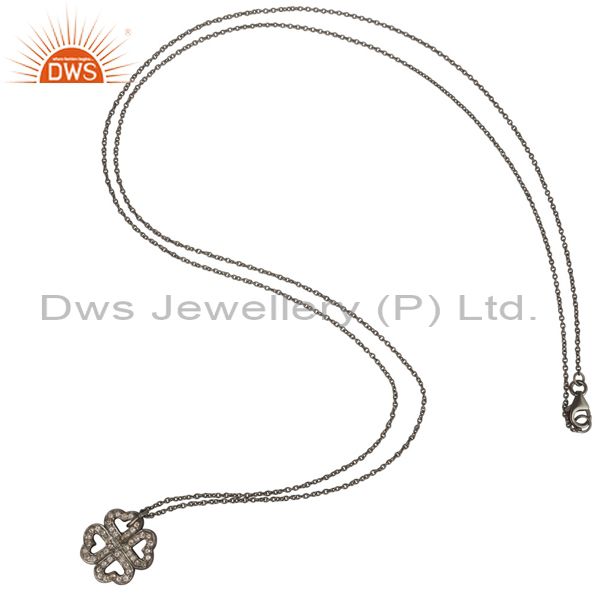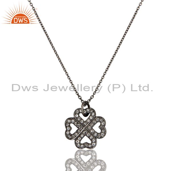 925 Sterling Silver With Oxidized White Topaz Heart Designer Pendant With Chain