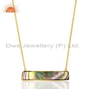 Abalone Shell Rectangle 925 Sterling Silver 18K Gold Plated Pendant And Necklace