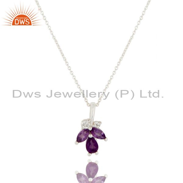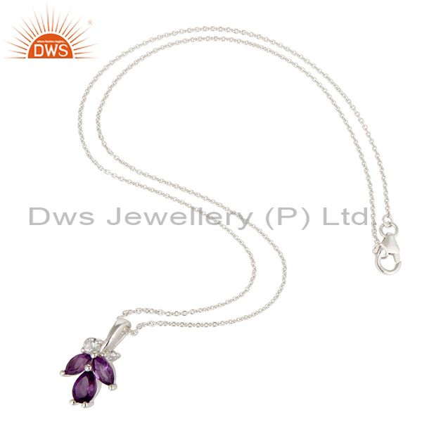 Amethyst And White Topaz Natural Gemstone Sterling Silver Pendant With Chain