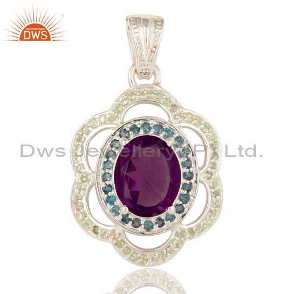 Amethyst, Blue Topaz And Peridot Gemstone Prong Set Sterling Silver Pendant