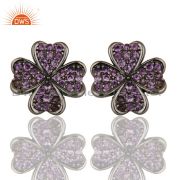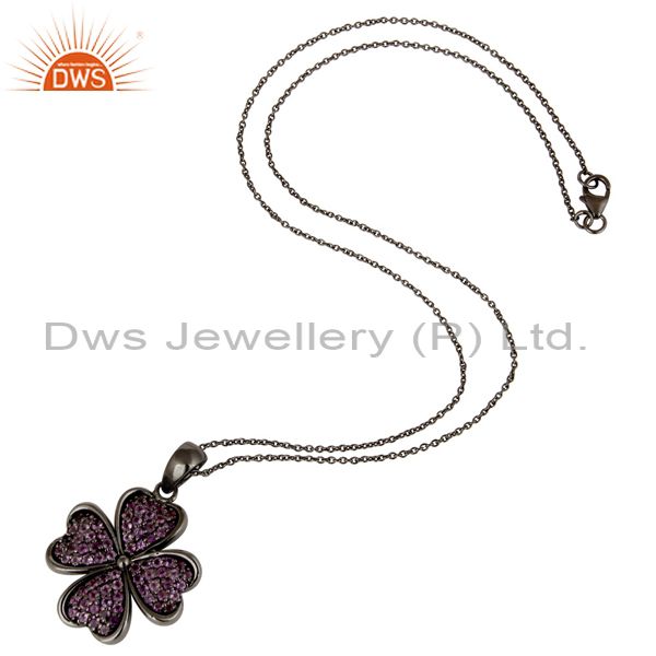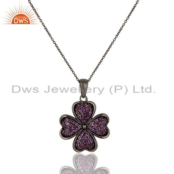 Amethyst Cut Flower Design With Oxidized Sterling Silver Chain Pendant Necklace