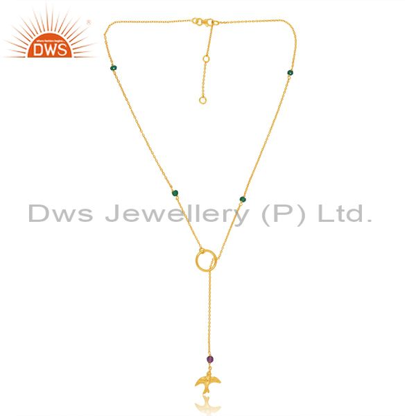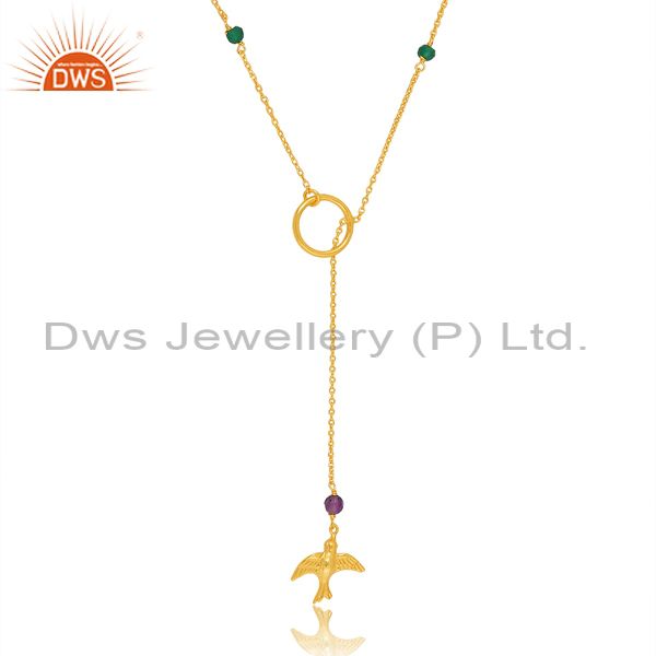 Amethyst, Green Onyx With Sterling Silver Pendant & Necklace