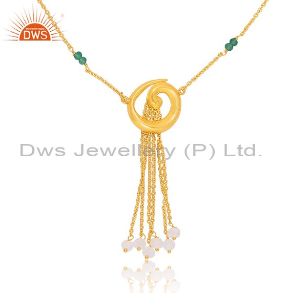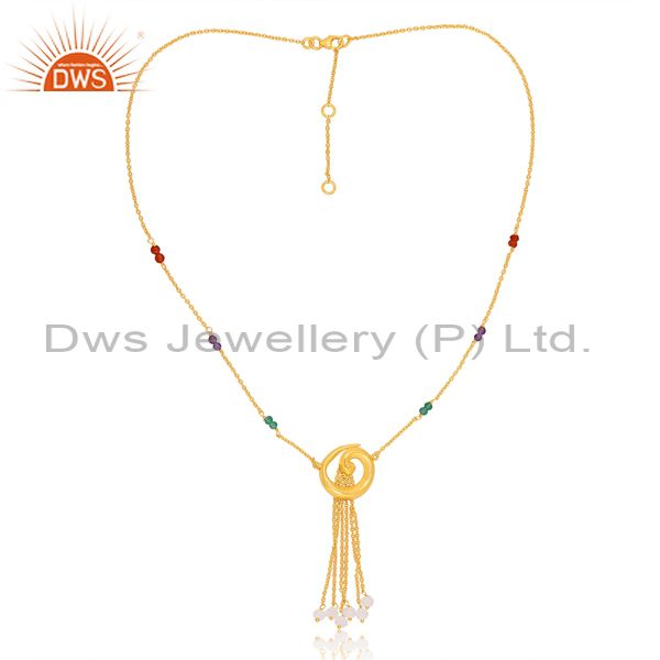 Amethyst, Green Red Onyx, Rainbow Moonstone 18K Silver Chain