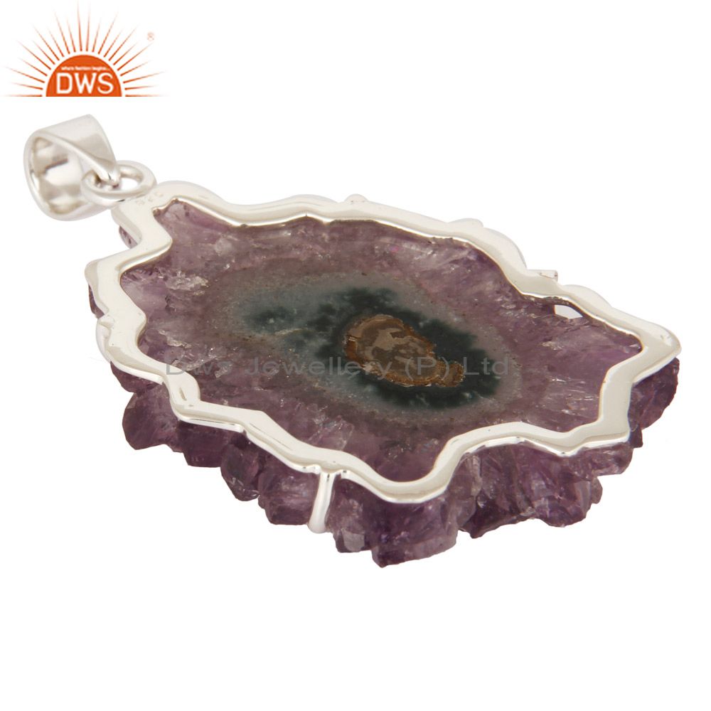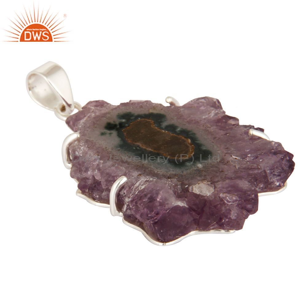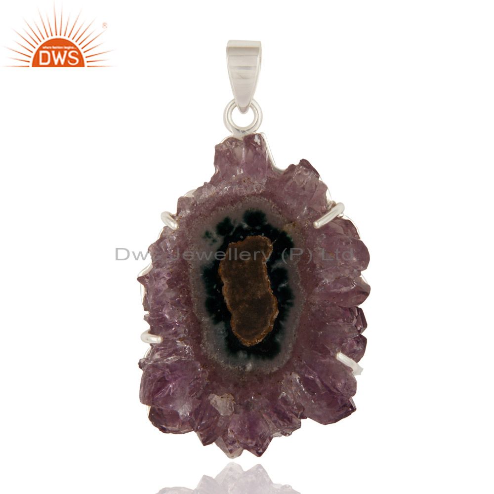 Amethyst Stalactite Slice Prong Set Gemstone Pendant Made In 925 Sterling Silver
