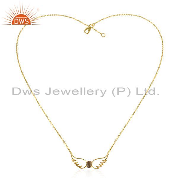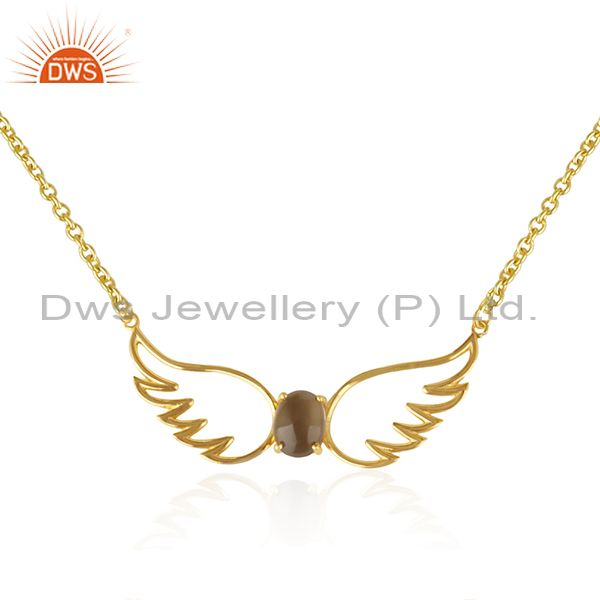 Angel Wing Gold Plated 925 Silver Smoky Quartz Chain Pendant Wholesale